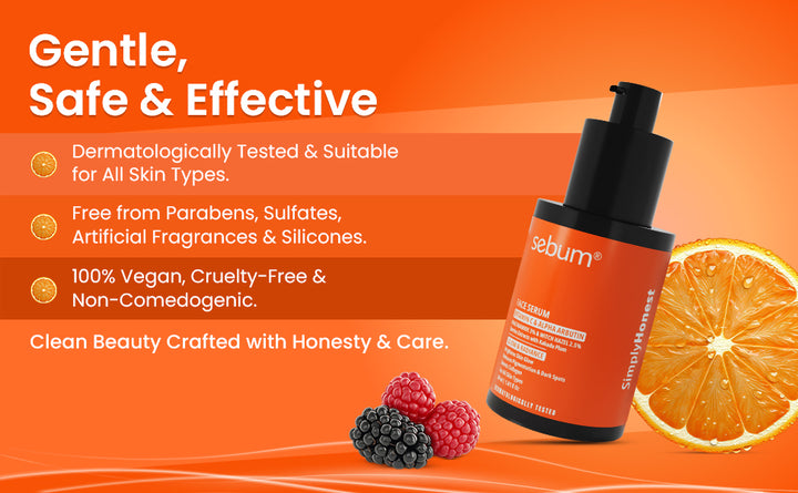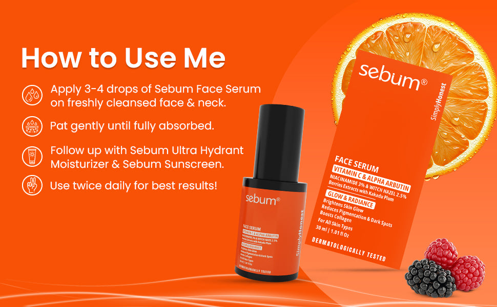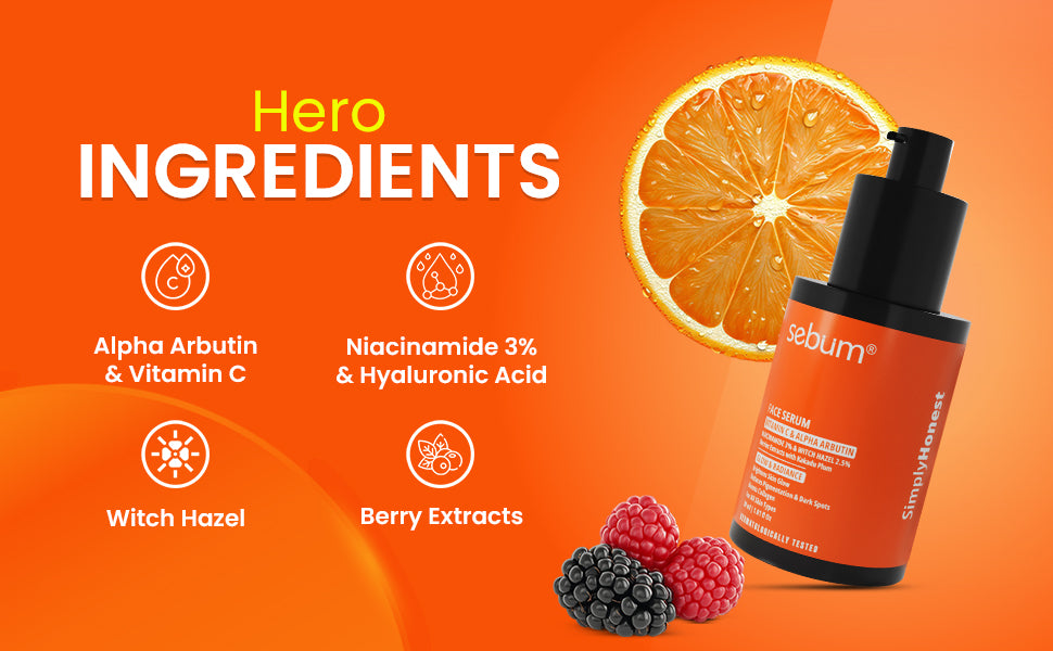 I am power packed with goodness of Vitamin C and Berries Extract along with Hyaluronic Acid, Niacinamide, Mulberry Extract, Blueberry Extract, Raspberry Extract an Argan Oil